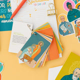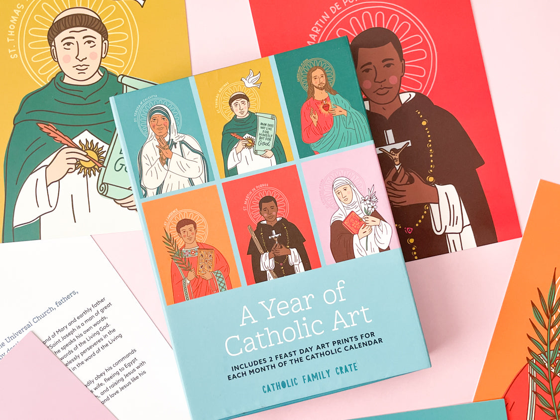 - 2 Feast Day Art Prints: Each monthly crate will feature two feast day art prints. The back of the art prints includes kid-sized bios and a prayer to share with your kids to help them grow closer to God through the saints.
