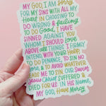 Hang this window cling on a mirror or window and learn this merciful prayer in anticipation of your reconciliation and renewal. Get one for yourself or give it as a special gift to someone who needs a daily reminder to pray!