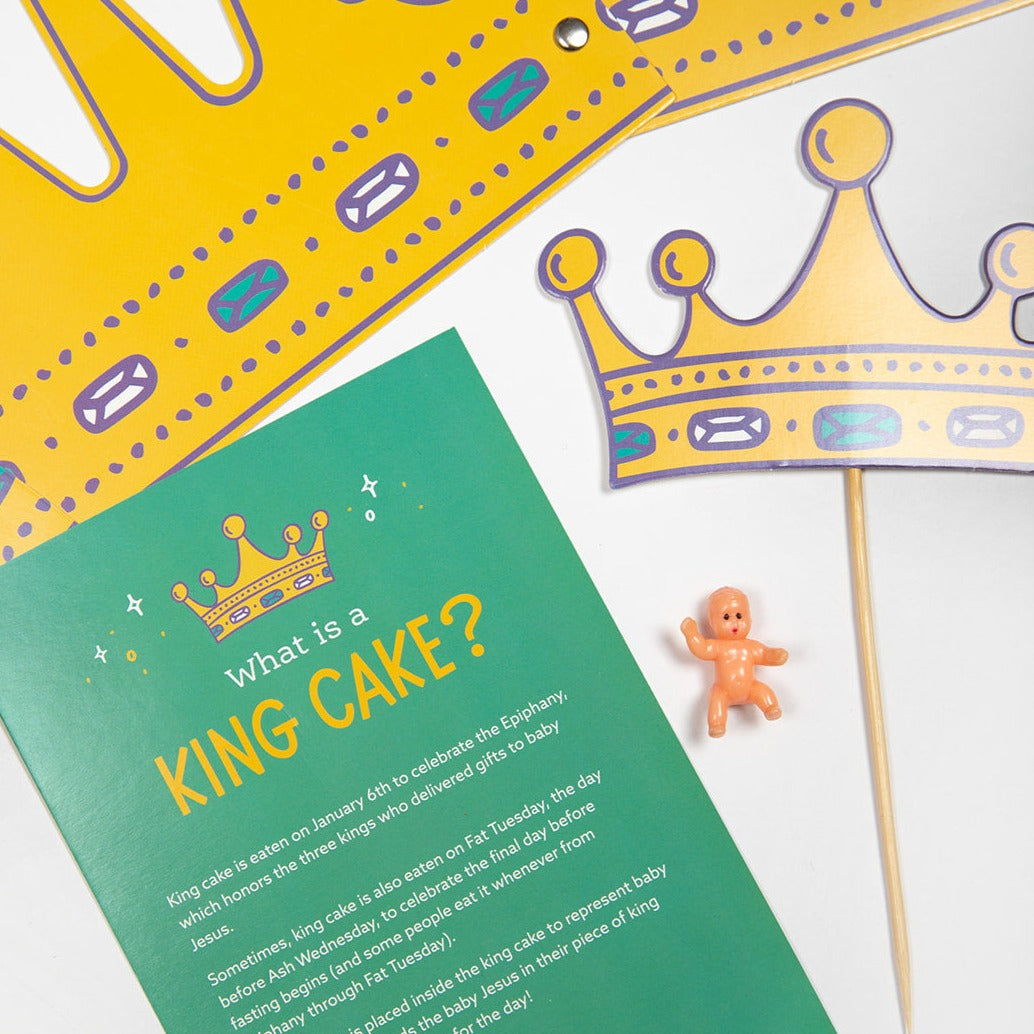 Celebrate Epiphany, which honors the three kings who delivered gifts to baby Jesus, by enjoying this sweet tradition - a King Cake! A small baby is placed inside the king cake to represent baby Jesus. Crown the person who finds the baby Jesus in their piece of king cake as king or queen for the day!