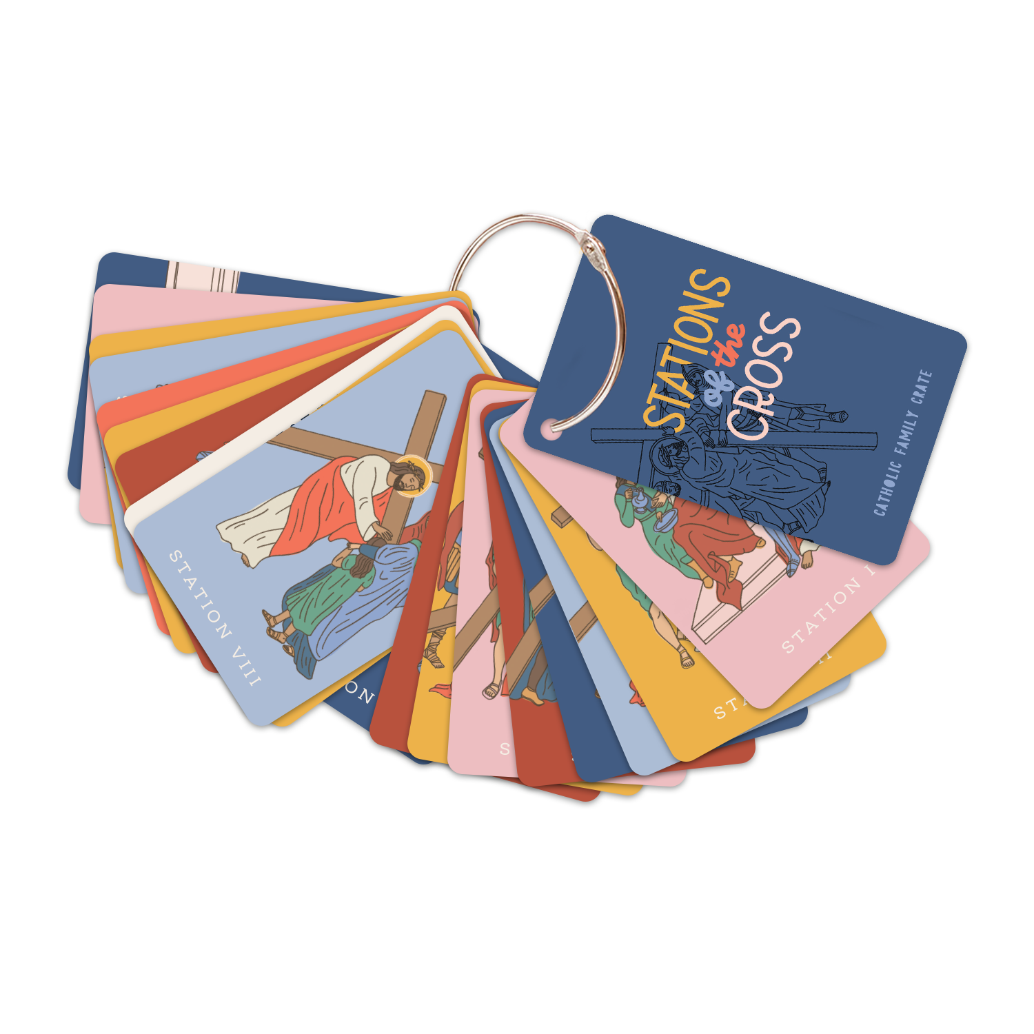 - Stations of the Cross Cards -Deepen your faith and understanding through the provided Scripture references, simple commentary, and age-appropriate prayers. These 5x7 cards also make for beautiful decoration during the Lenten season as a beautiful banner.