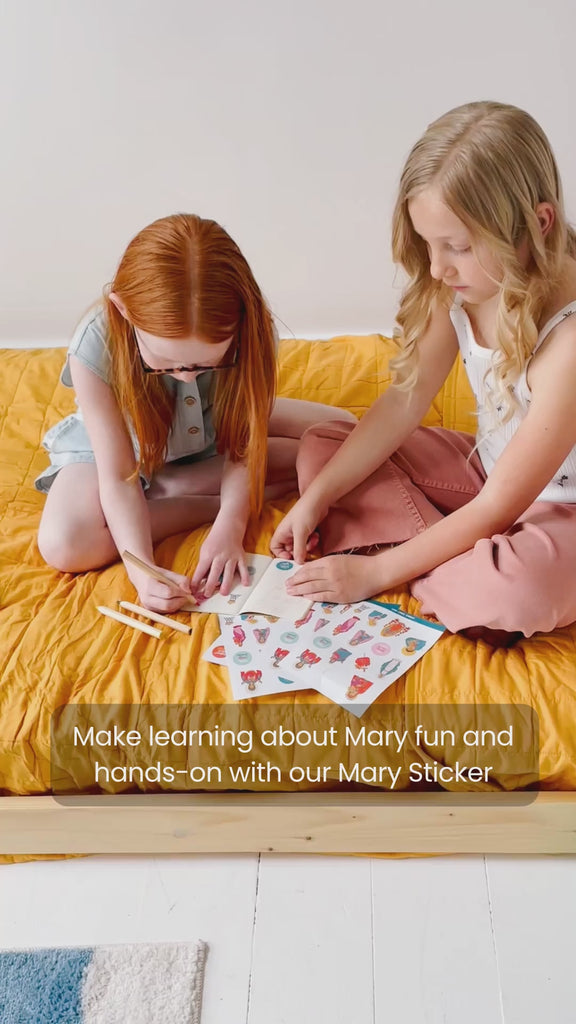 "I gave these stickers to my kids during Advent, and they absolutely loved them! They spent hours decorating their prayer journals and crafting their own little altar for Mary. The quality is amazing, and I love how affordable they are compared to others. Plus, with five sheets, there's plenty to go around!" – Anna M.