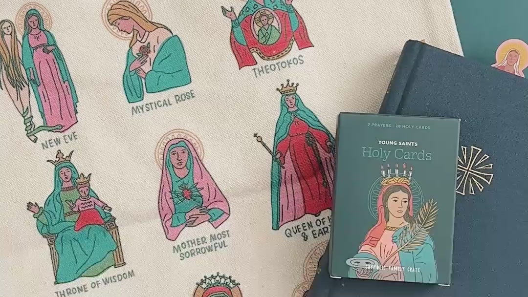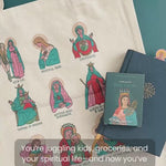 Carry your devotion to the Blessed Mother with elegance and purpose with our Names of Mary Tote Bag. This beautiful cotton canvas tote features stunning artwork highlighting the various titles of Mary, making it a meaningful and stylish accessory for any Catholic.