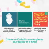 Pray By Sticker™ is the perfect gift for children, grandchildren, godchildren, nieces and nephews. It's a wonderful gift for birthdays, Christmas, First Communion, First Reconciliation, or simply to show your love and support for their faith journey. Ideal for kids, families, Catholic schools, religious education classes, homeschooling groups, and Vacation Bible Schools. The perforated pages make it easy to share with classmates, friends, or siblings. At an affordable price, this is a great item to stock up on to have on hand when you need a last minute, fun, and UNIQUE gift.