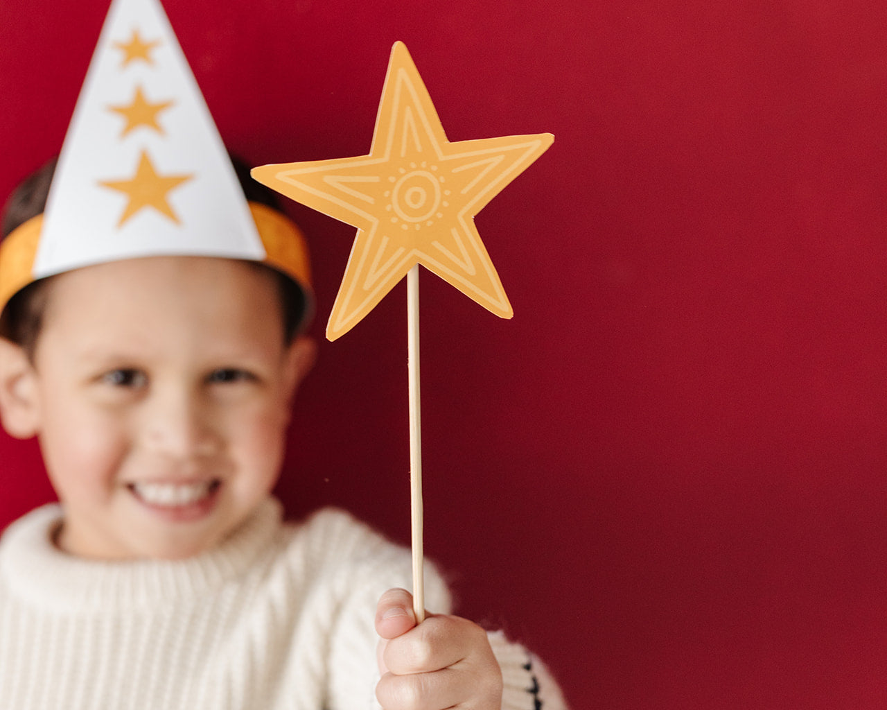 ⭐ Star Craft Instructions – Easy-to-follow directions to help you assemble your Star Boy hat with confidence. Enough for 2 children. (Does not include wooden dowel pictured, includes instructions for items you would have around the house to use.)